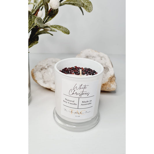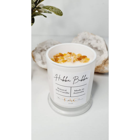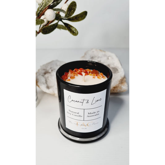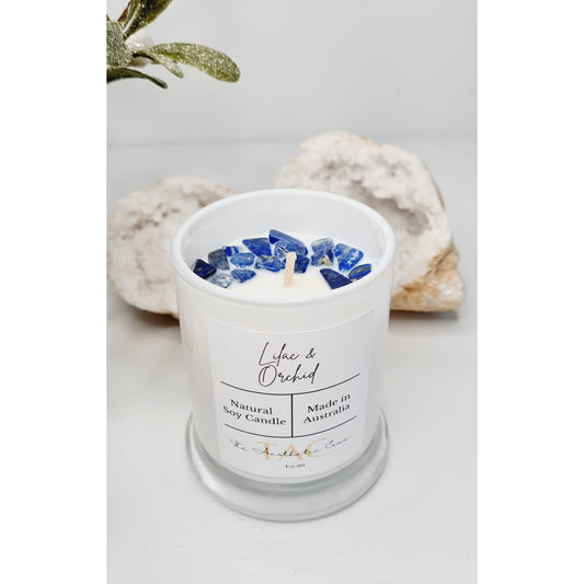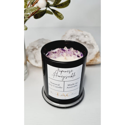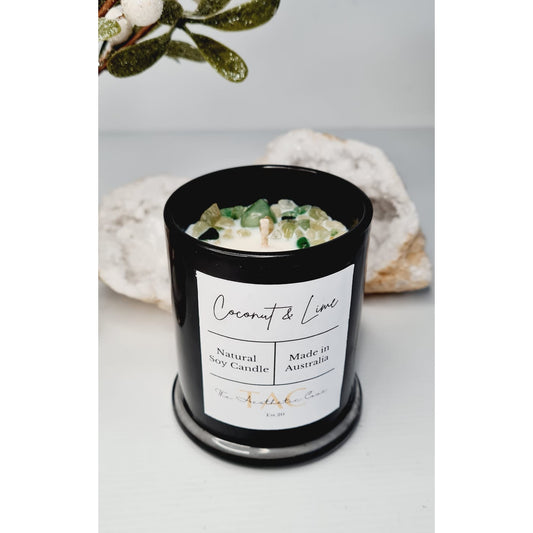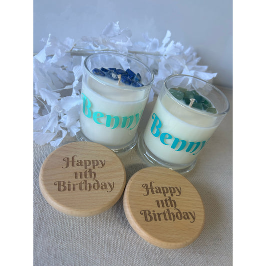 Soy Wax Candle With Engraved Wooden Lid And Infused Crystals