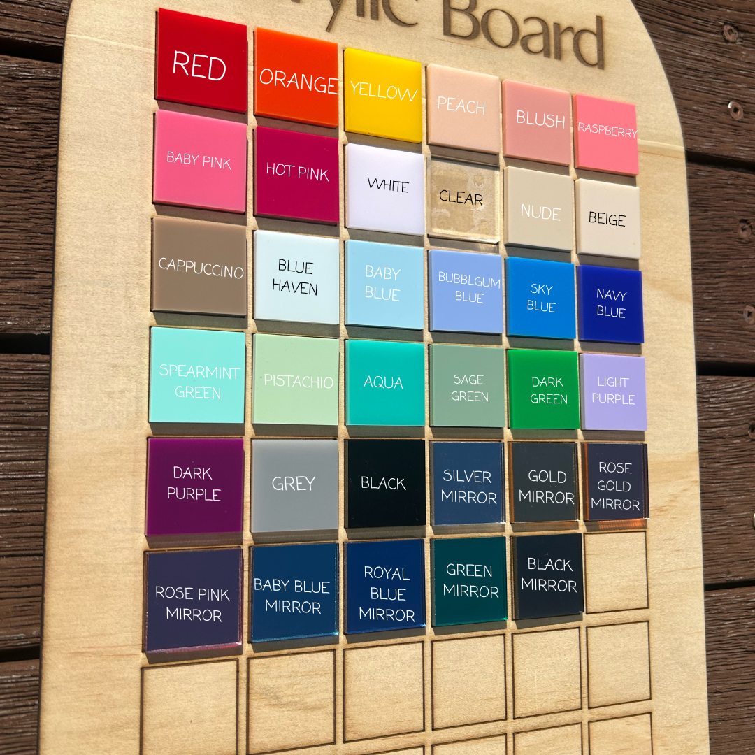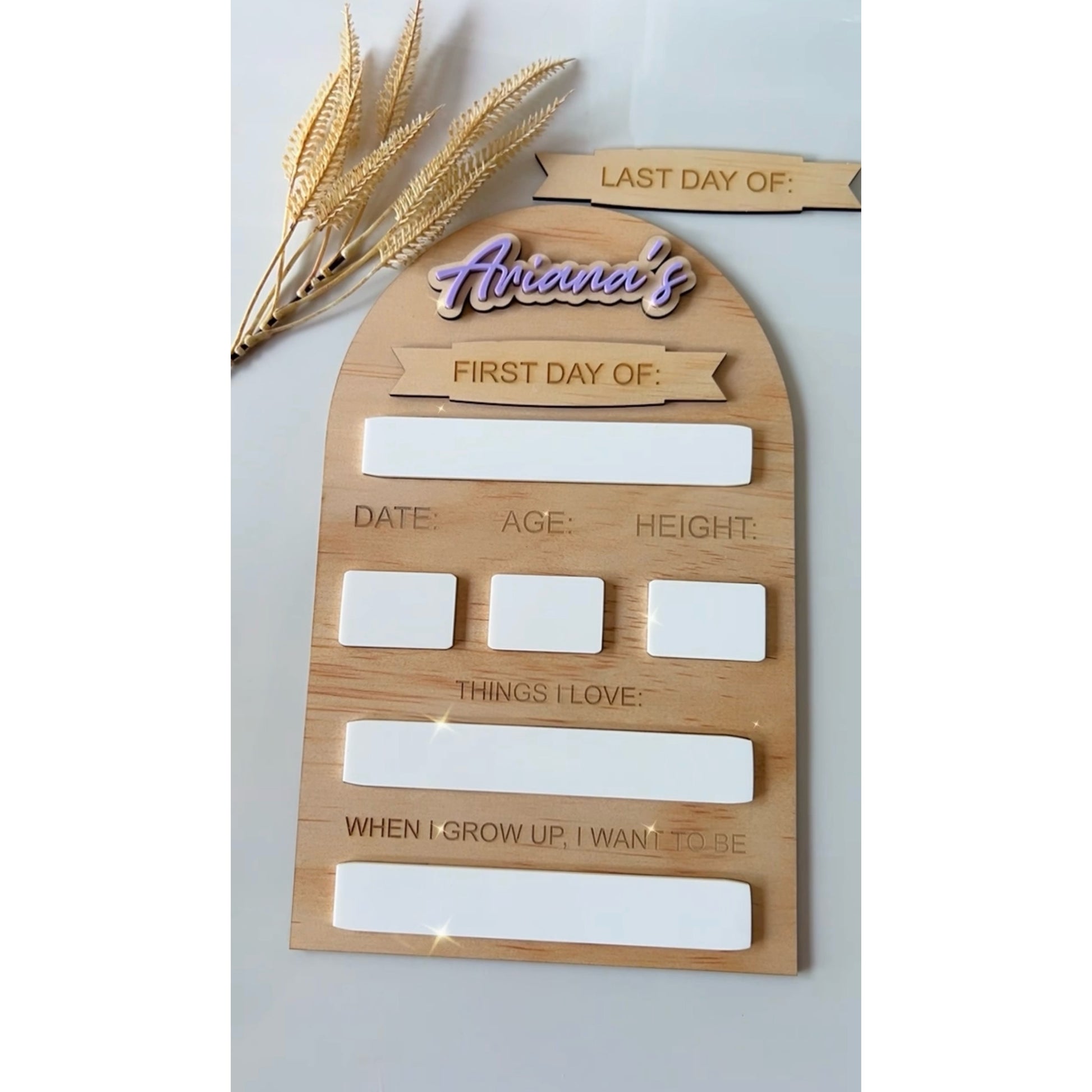 These plaques measure 18x29cm in size and are made using plywood and acrylic panels. The white panels act as a whiteboard and can be written on using a whiteboard marker. Once all photos have been taken, simply wipe off with a damp cloth and it'll be good as new to use for the following year.