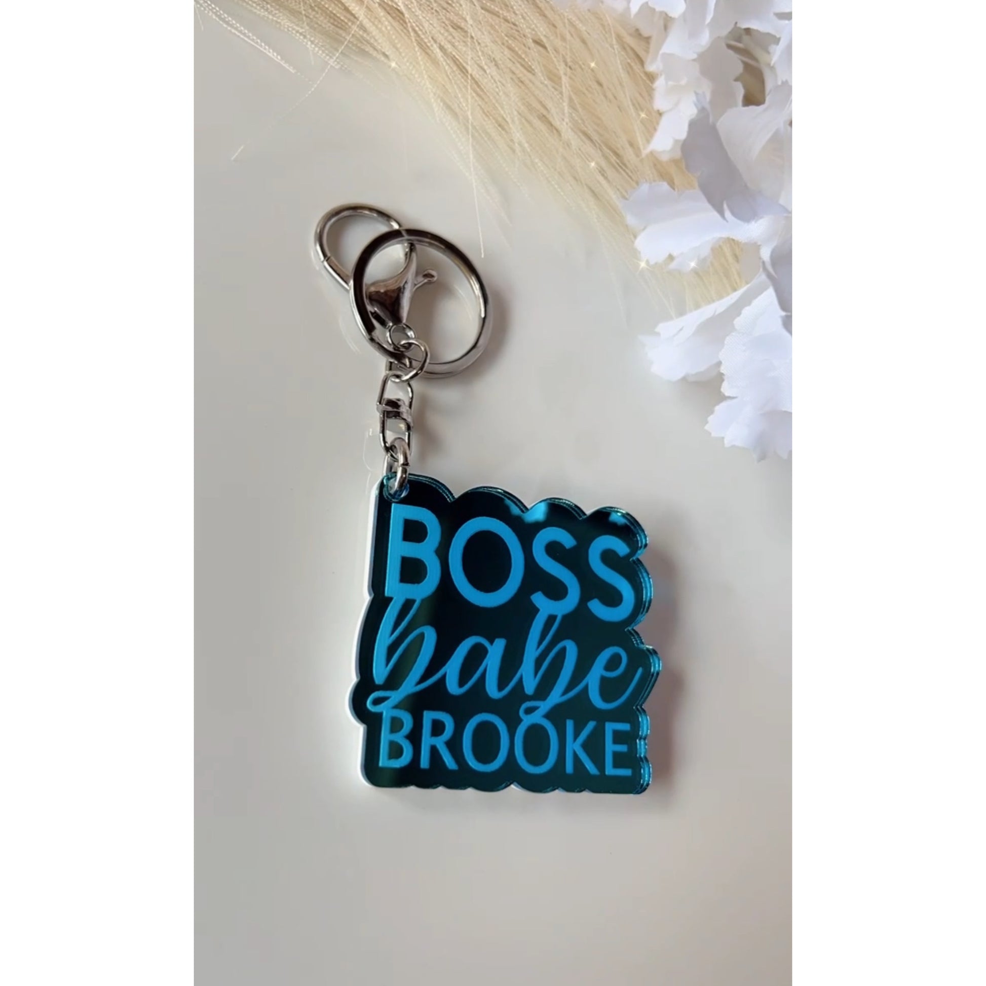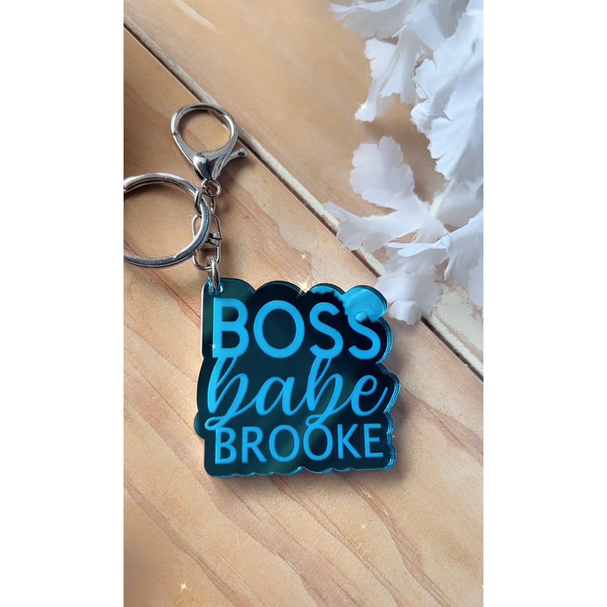 You have the option to purchase the keychain plain with just 'Boss babe' or personalised with a name on the bottom.