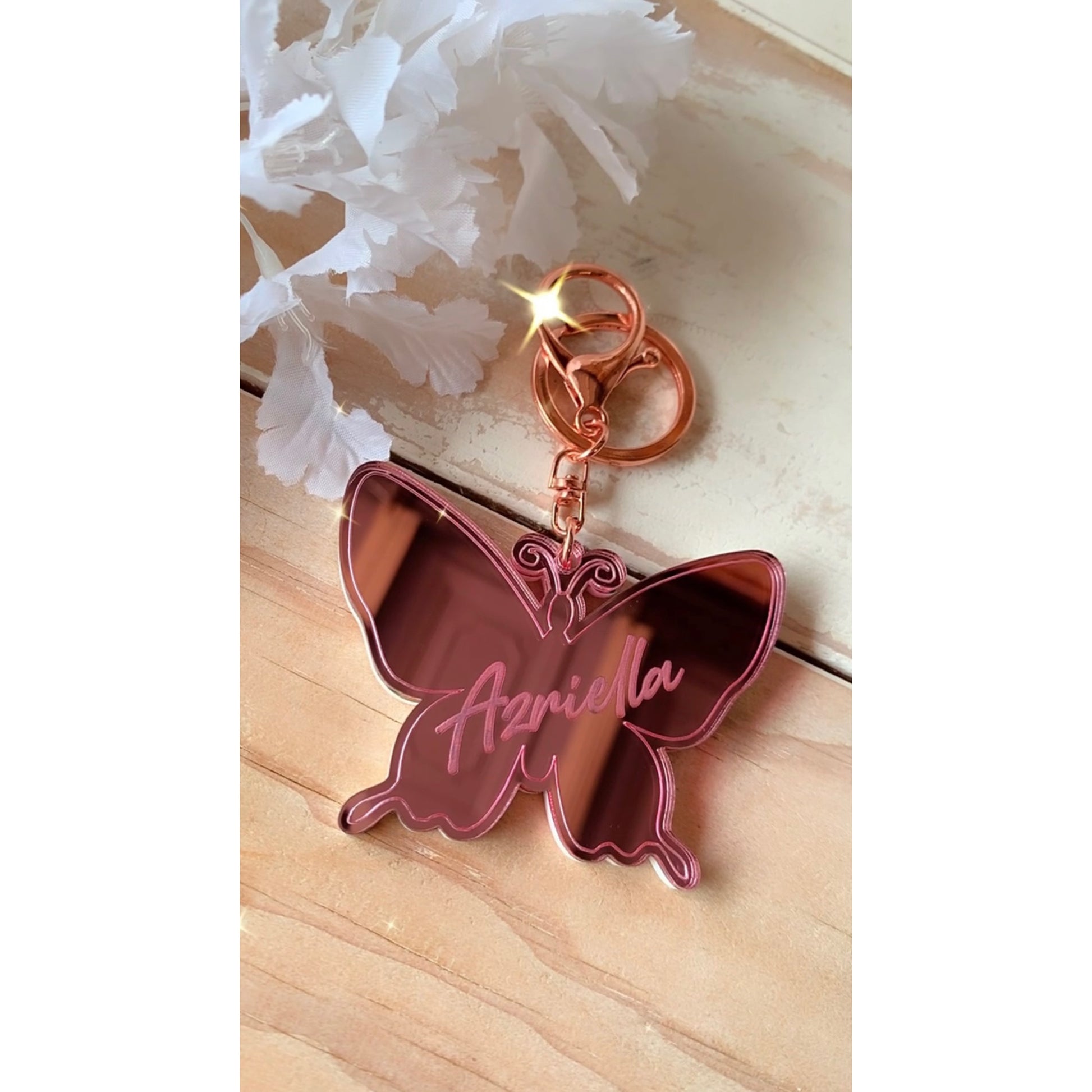 Accessorise your keys with one of our beautiful personalised mirror butterfly keychains.