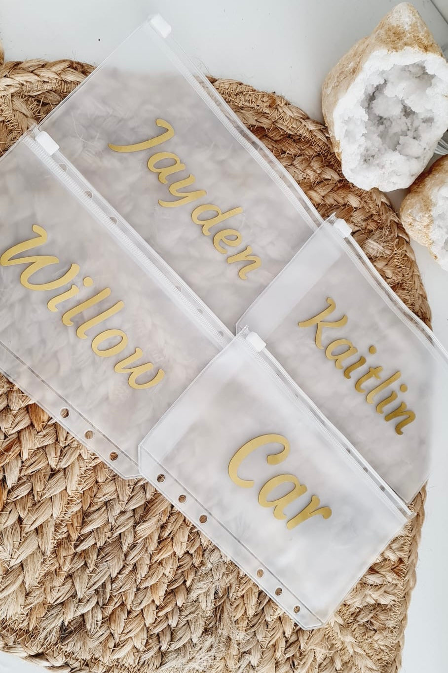 These plastic sleeves are extras for our budget binders. Simply leave the personalisation of the extra sleeves alone with colour and font #.