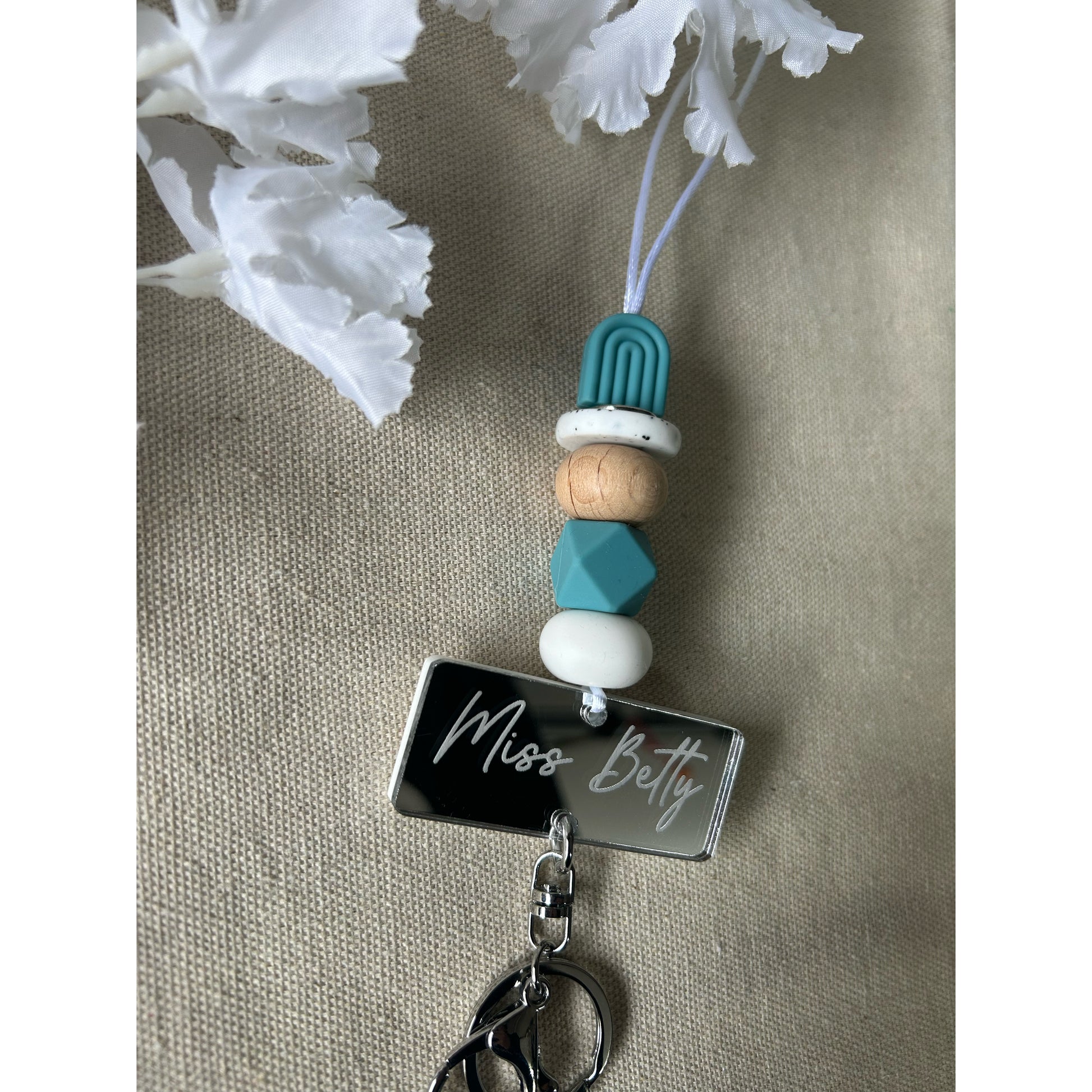 Why not purchase one of our fashionable silicone beaded lanyards, personalised with an acrylic mirror piece. All our lanyards are hand made using high quality silicone beads, wooden beech beads and acrylic.