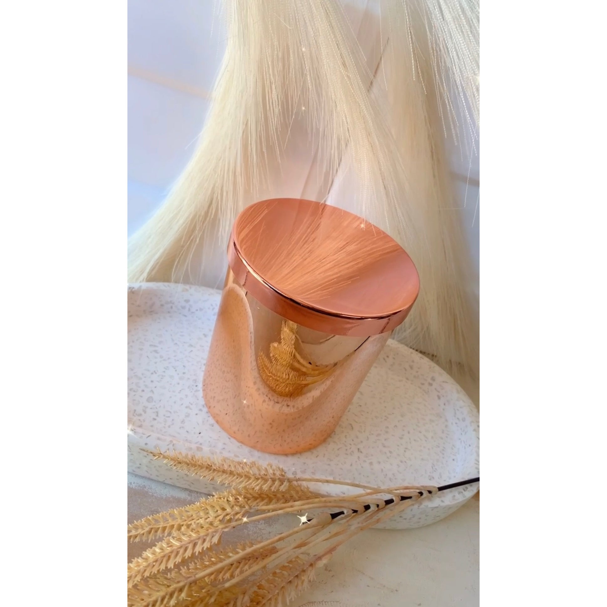 With a holographic/iridescent base candle jar and gold top lid, you can't go wrong with these beauties.