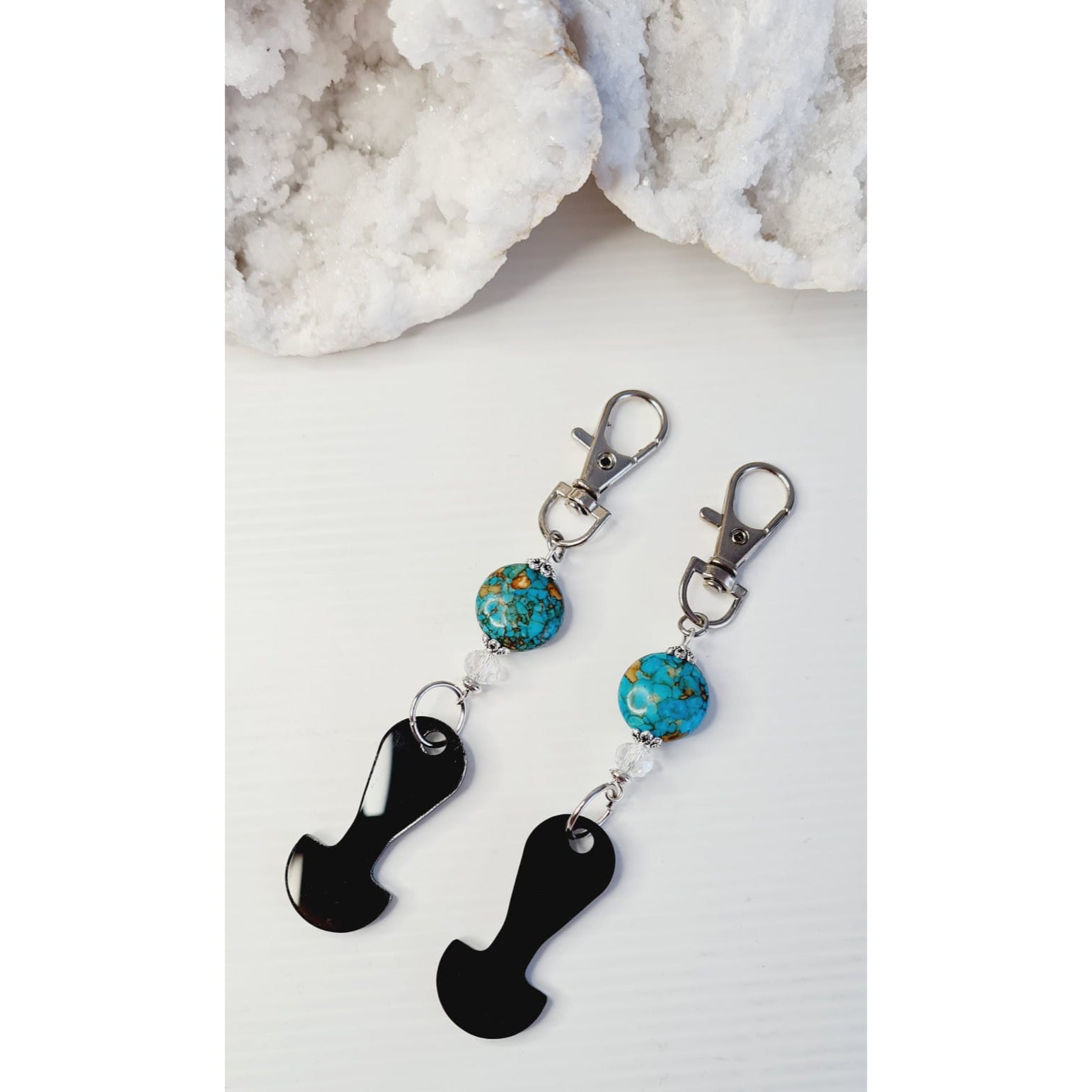This unique trolley token is handmade using a genuine multicoloured turquoise stone.