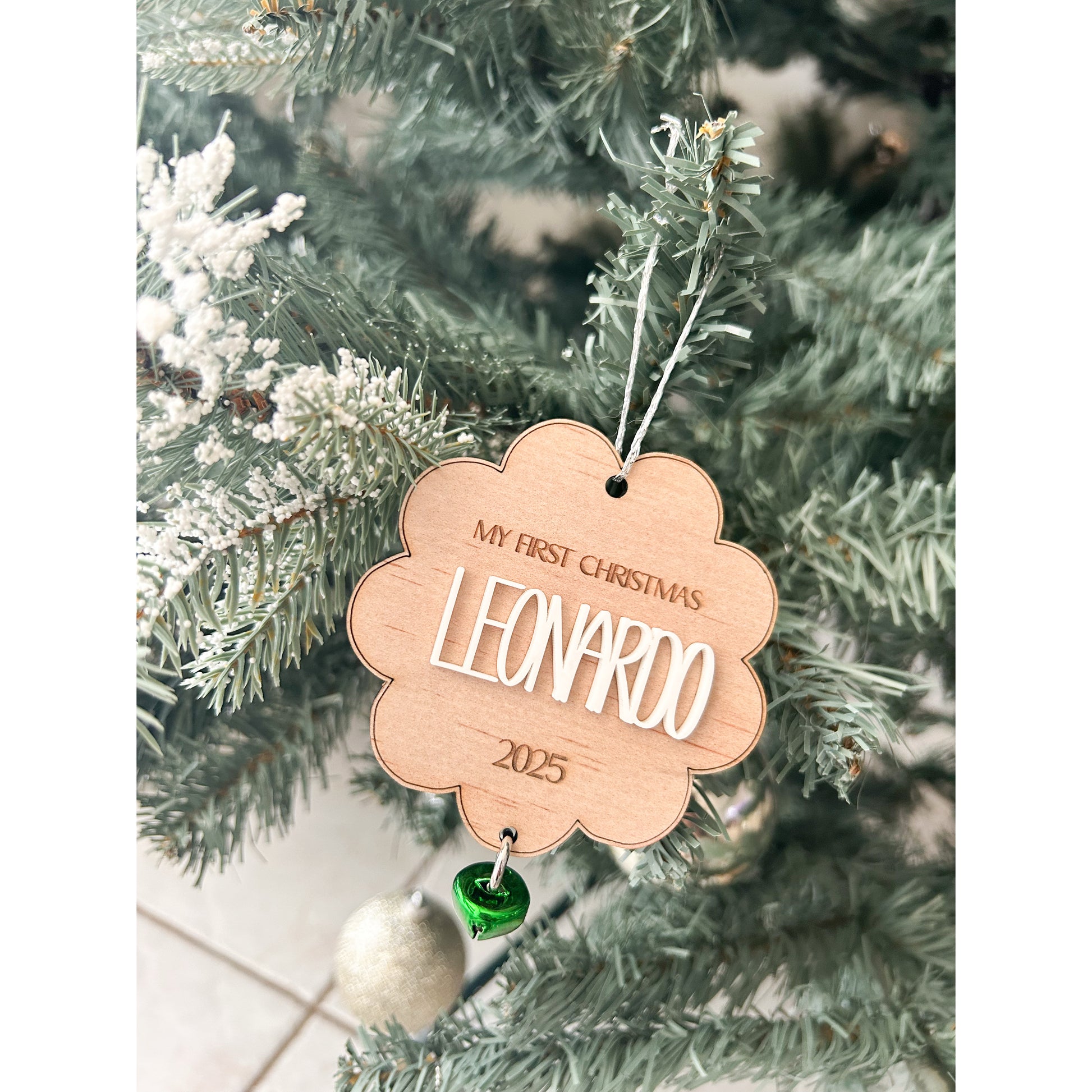 - Each bauble has "My first Christmas" engraved and 2025 engraved